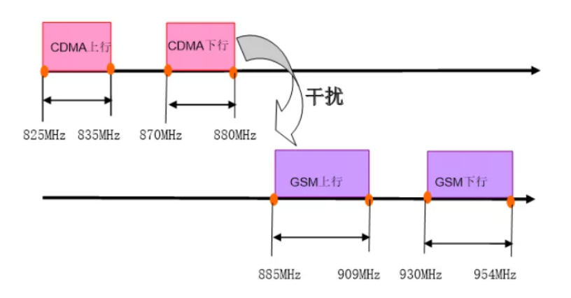 電信800M對(duì)鐵路和移動(dòng)的900M產(chǎn)生干擾確定為阻塞干擾。